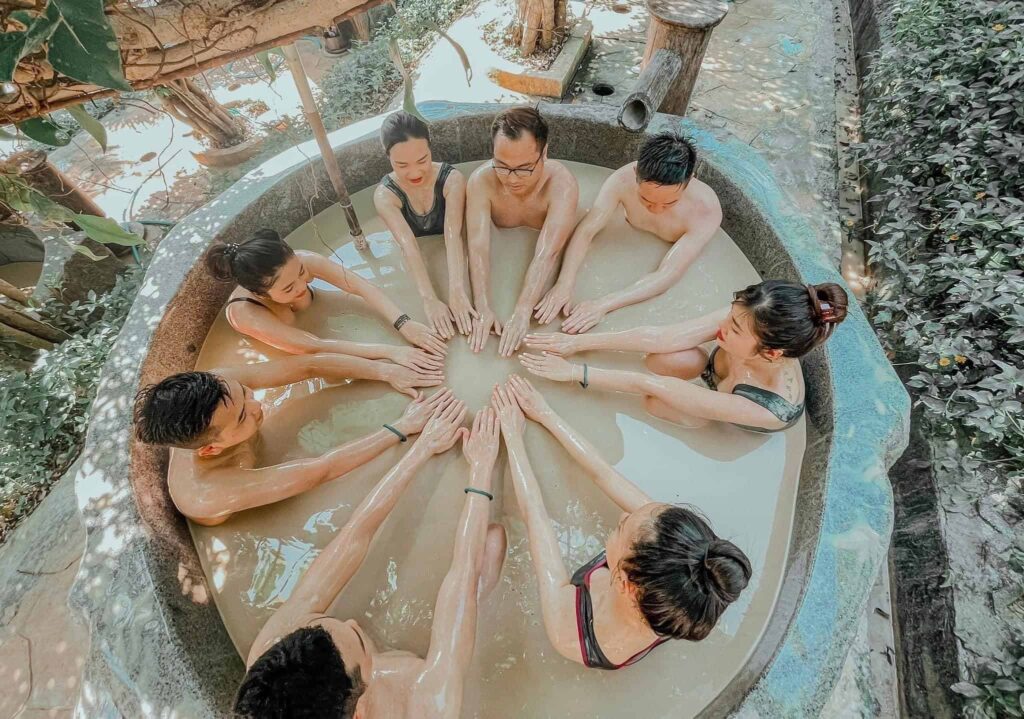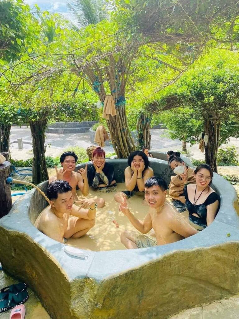 3- Có thể say sẩm khi tắm bùn: vâng đúng đấy ạ, tắm mà say. Mình gặp không ít trường hợp như thế, ngâm bùn nóng tầm 10-15 phút là khách thấy say sẩm mặt mày, buồn nôn, chóng mặt, phải lên ngồi nghỉ . Tất nhiên thì tầm 20-30 phút sau thì cũng hết thôi. Tuy nhiên, tắm mà thấy nôn nao thì phần nào làm cho khách cảm thấy không vui. Mặc dù chỉ có vài % ít ỏi số người bị say kiểu ấy nhưng cũng là điều đáng lưu ý. Theo mình là không nên ngâm nước quá nóng, và đừng ăn quá no trước khi đến Hòn Tằm.